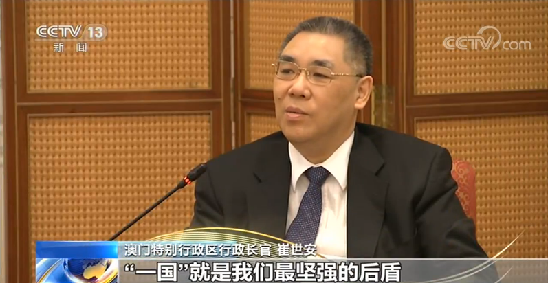 澳门特别行政区行政长官 崔世安:“一国两制”,“一国”就是我们最坚强的后盾。我们尽我们最大努力去融入大湾区的发展,是国家给了我们一个很宝贵的机会,突破了澳门很多短板。我衷心祝愿澳门特别行政区繁荣稳定,明天会更好。