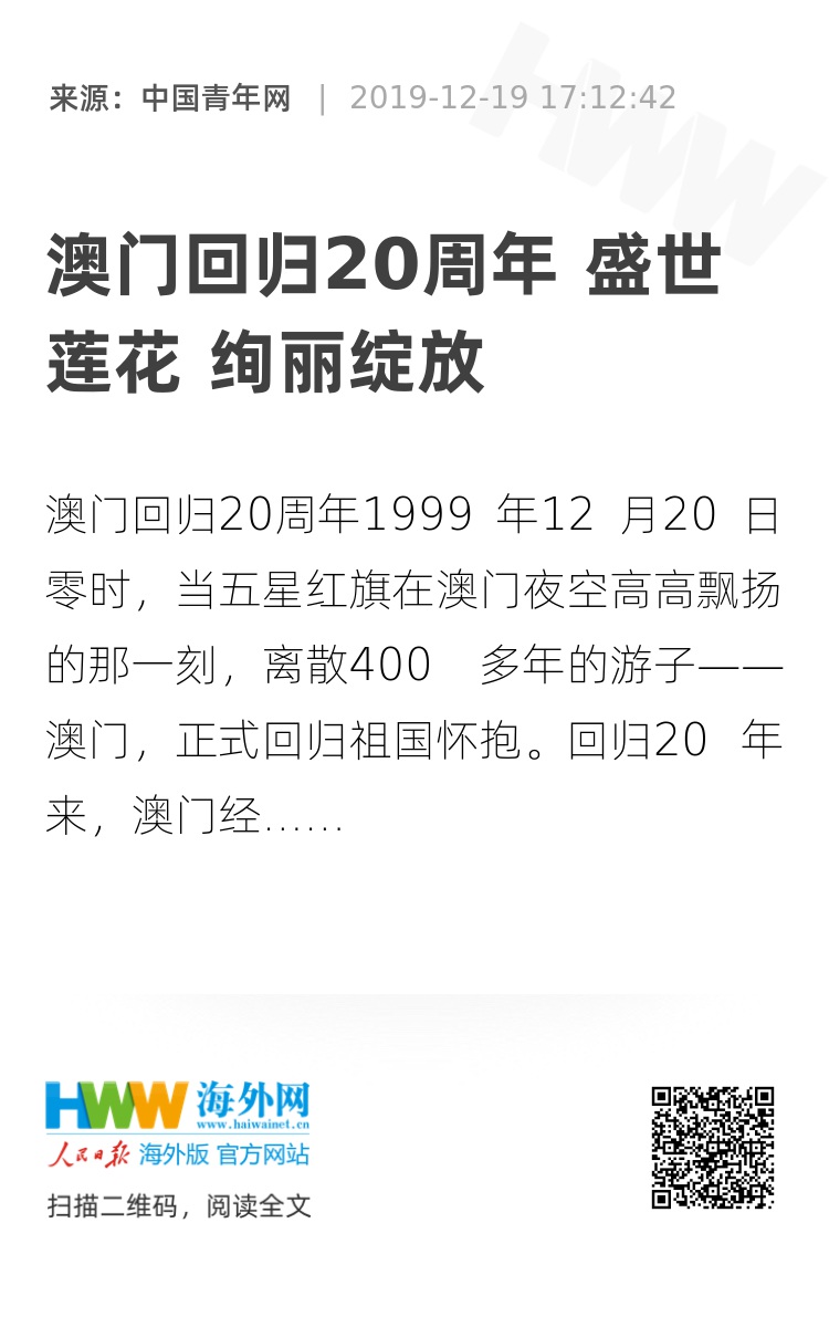 我的前半生在香港,我的后半生将与澳门厮守。我庆幸能够在祖国赋予的两个特区内成长及生活,让我拥有了不一样的人生。我将主动参与大湾区建设,在获得自身发展的同时,继续传承和弘扬好“爱国爱澳”的优良传统,以实际行动拥护“一国两制”和《基本法》,坚定支持澳门社会的稳定与发展。