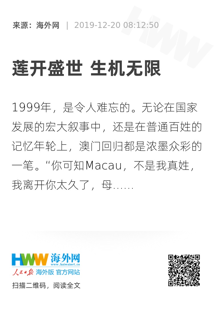 1999年,是令人难忘的。无论在国家发展的宏大叙事中,还是在普通百姓的记忆年轮上,澳门回归都是浓墨众彩的一笔。