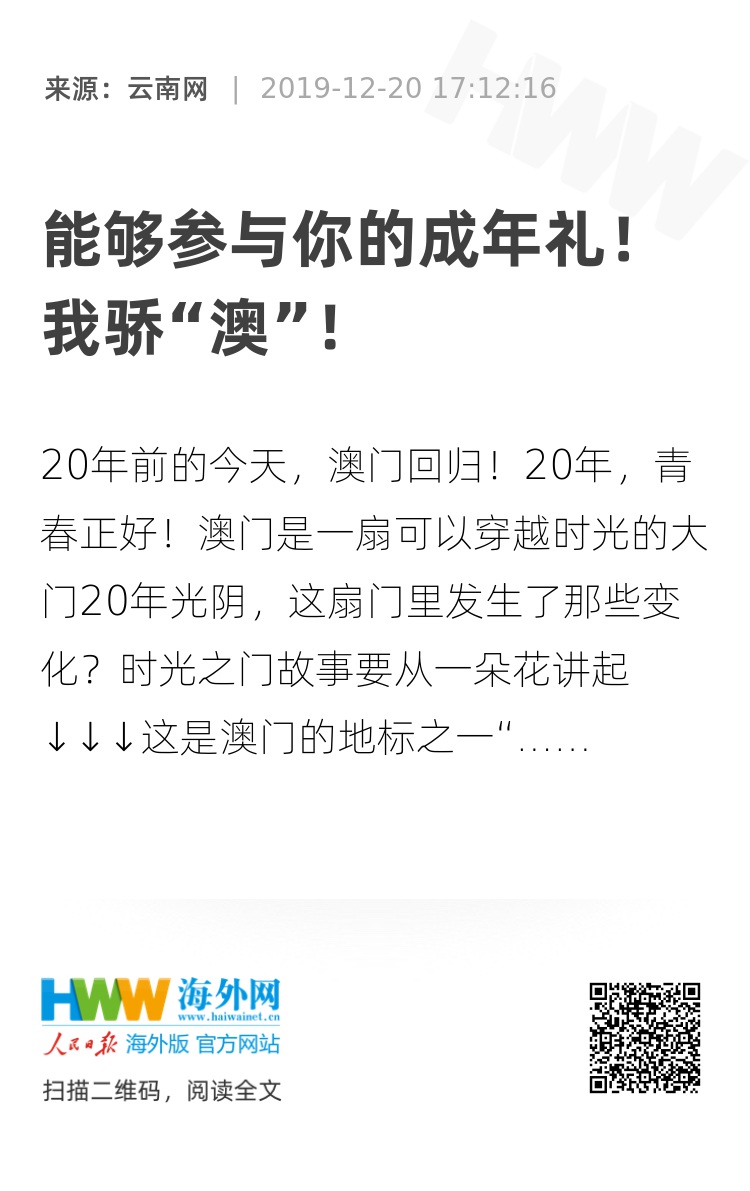 20年前的今天,澳门回归!20年,青春正好!