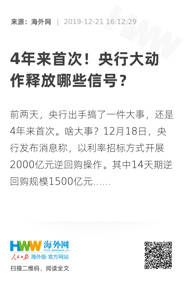 前两天,央行出手搞了一件大事,还是4年来首次。