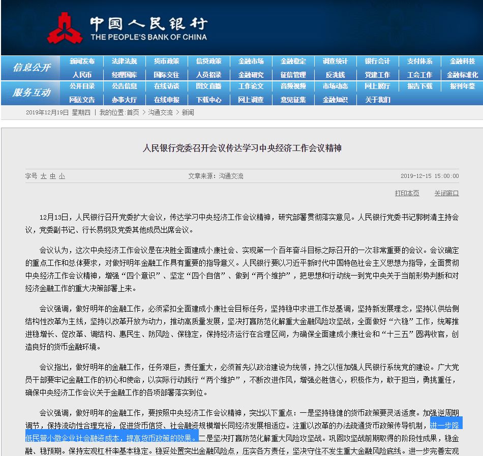 近期,人民银行党委在开会学习传达中央经济工作会议精神时表示,要进一步降低民营小微企业社会融资成本,提高货币政策的效果。