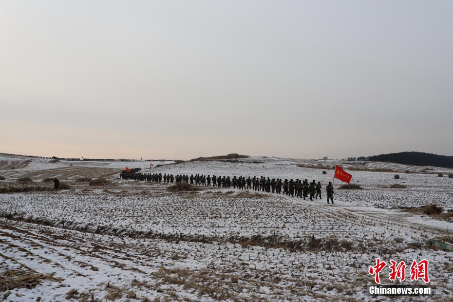 12月22日,武警辽宁总队沈阳支队组织新兵开展野营拉练,在恶劣环境下锤炼部队作风,提升新兵综合素质能力。 (中新社发 邹新江 摄)