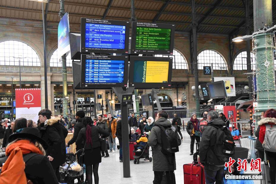 当地时间12月22日,法国国家铁路公司(SNCF)在主要交通枢纽巴黎北站提供很有限的客运列车服务,大部分车次取消,多数站台不提供服务。仍在服务的列车上乘客爆满。圣诞假期已经来临,但大罢工仍然持续,导致民众出行困难。SNCF呼吁民众取消或更改出行计划。 (中新社记者 李洋 摄)