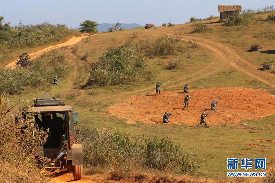 “携手—2019”中印陆军反恐联合训练20日在印度梅加拉亚邦西隆市乌姆罗伊军营举行结训仪式,双方观摩团团长共同检阅联训分队,并为优秀队员颁发奖章。“携手—2019”中印陆军反恐联合训练本月7日至20日在乌姆罗伊举行。中印双方各派出130名官兵组成联训分队,按照适应性训练、混编同训和综合演练三个阶段完成实兵演练。 新华社发(王昊摄)