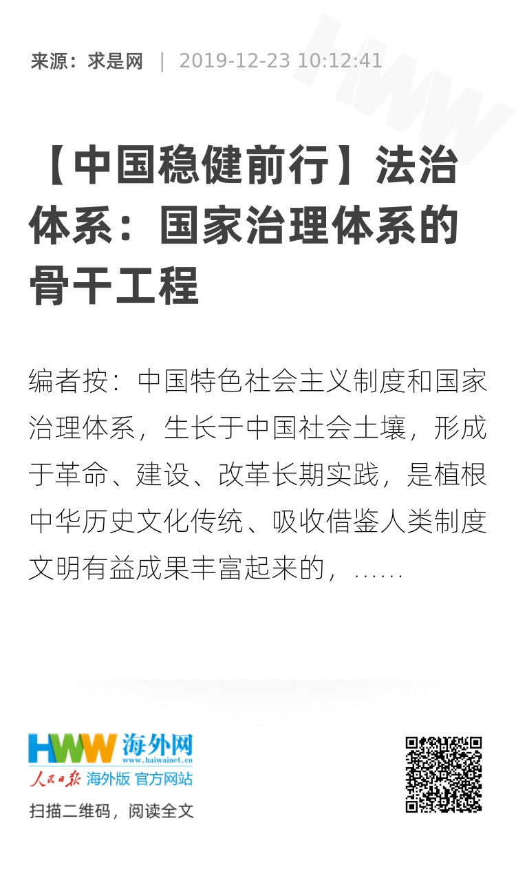 编者按:中国特色社会主义制度和国家治理体系,生长于中国社会土壤,形成于革命、建设、改革长期实践,是植根中华历史文化传统、吸收借鉴人类制度文明有益成果丰富起来的,不仅保障了我国经济快速发展和社会长期稳定的奇迹,也为多元文明共生并进的人类社会发展增添更多色调、更多范式、更多选择。党的十九届四中全会通过的《中共中央关于坚持和完善中国特色社会主义制度、推进国家治理体系和治理能力现代化若干重大问题的决定》,从13个方面系统总结和深刻阐述了我国国家制度和国家治理体系的显著优势,紧紧围绕“坚持和巩固什么” “完善和发展什么”,提出了一系列新思想新观点新举措,提出了把新时代改革开放推向前进的根本要求,是我们坚定“四个自信”的基本依据。为深入学习宣传党的十九届四中全会精神,中央网信办与求是杂志社共同组织“中国稳健前行”网上理论传播专栏,邀请思想理论界专家学者撰写系列理论文章,今天在求是网推出第13篇,敬请关注。
