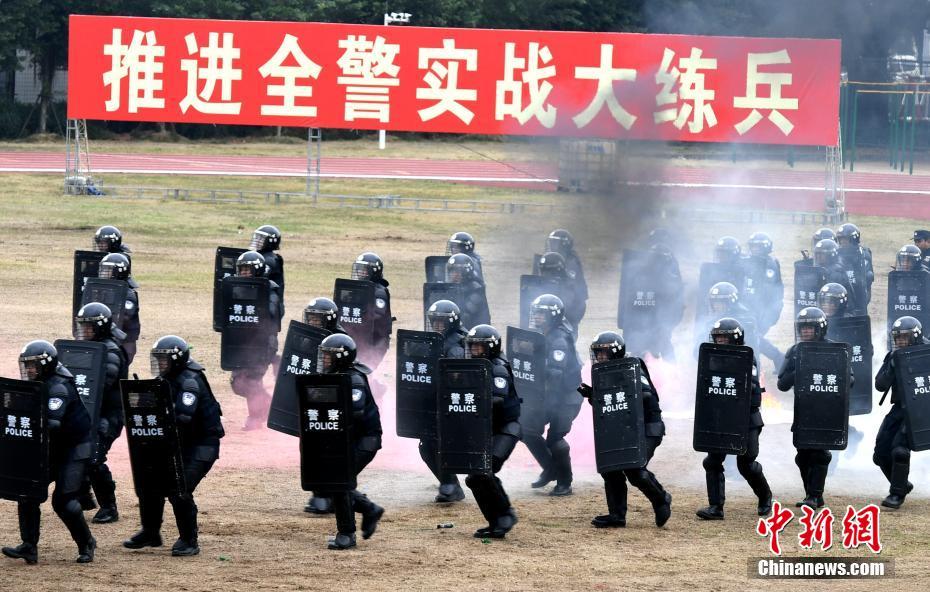 12月24日,福建省公安厅在福建警察学院开展全省公安机关冬季实战大练兵汇报演练。汇报演练紧密结合警方工作实战需要,设置了交警指挥手势操、徒手格斗技术、警棍与盾牌术、警犬技术、现场执法行动程序、枪操、警用无人机战法等9个科目,充分展示实战大练兵成果。(中新社记者 王东明 摄)