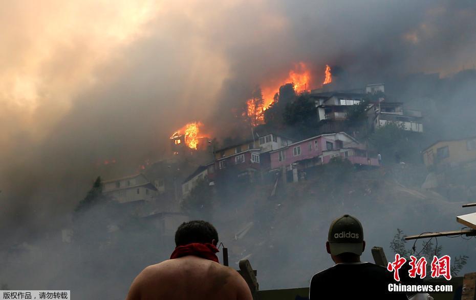 智利突发森林大火 熊熊火焰吞没大量房屋