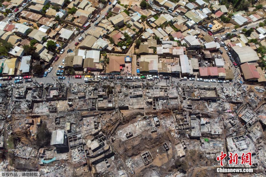 智利火灾扑灭后现场对比明显 过火居民区成废墟