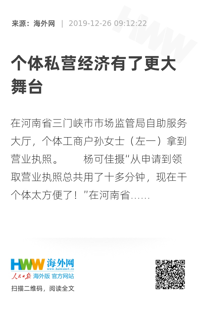 “从申请到领取营业执照总共用了十多分钟,现在干个体太方便了!”在河南省三门峡市市场监管局企业登记全程电子化自助服务大厅,个体工商户孙女士拿着新办的营业执照说:“新举措、新速度令人惊叹!”