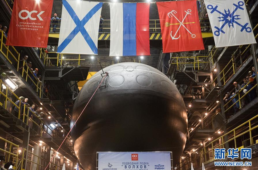 12月26日,“沃尔霍夫”号潜艇下水仪式在俄罗斯圣彼得堡海军部造船厂举行。 新华社发(莫京娜摄)