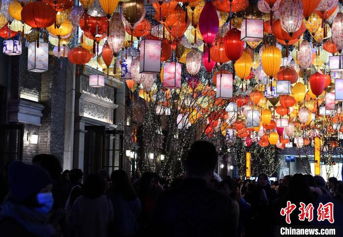 图为新年将至,重庆公园内花灯璀璨年味渐浓。 周毅 摄