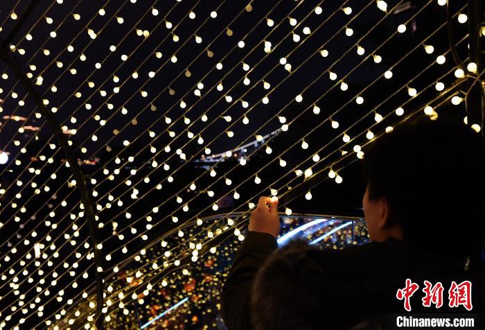 图为公园内烘托节日气氛的彩灯吸引市民眼球。 周毅 摄