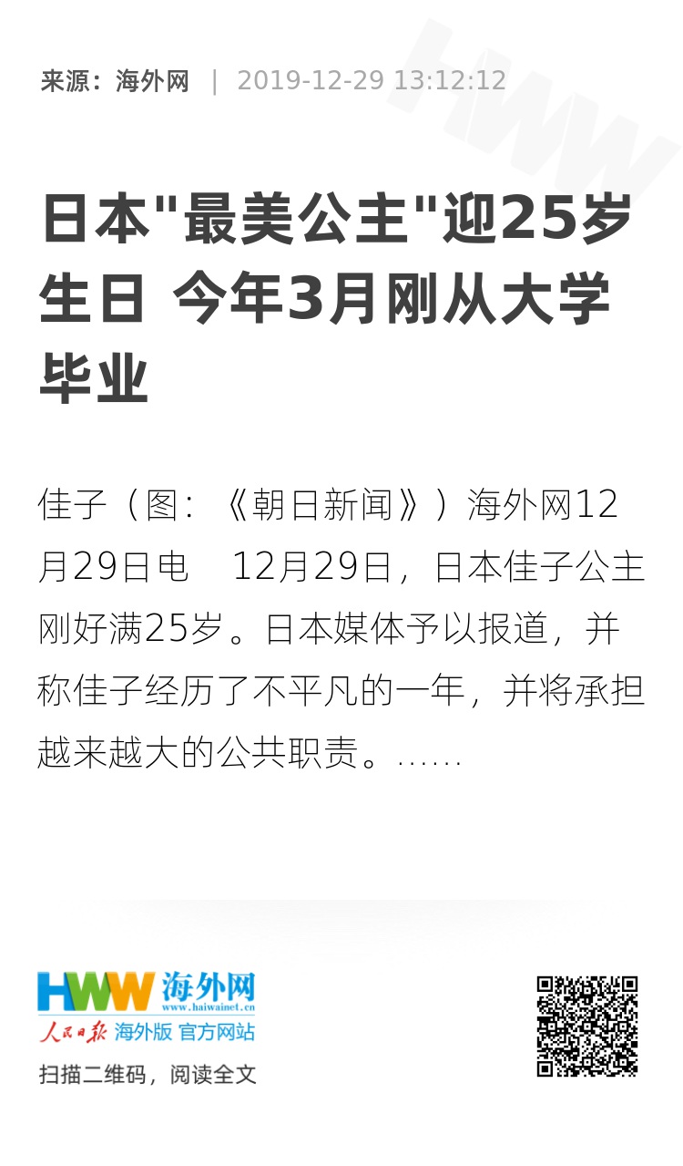 海外网12月29日电 12月29日,日本佳子公主刚好满25岁。日本媒体予以报道,并称佳子经历了不平凡的一年,并将承担越来越大的公共职责。