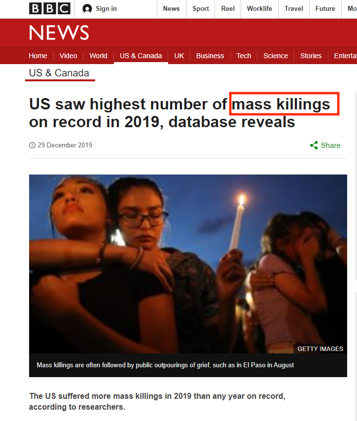 △英国广播公司:数据显示,美国2019年发生了有史以来最密集的大规模杀戮事件