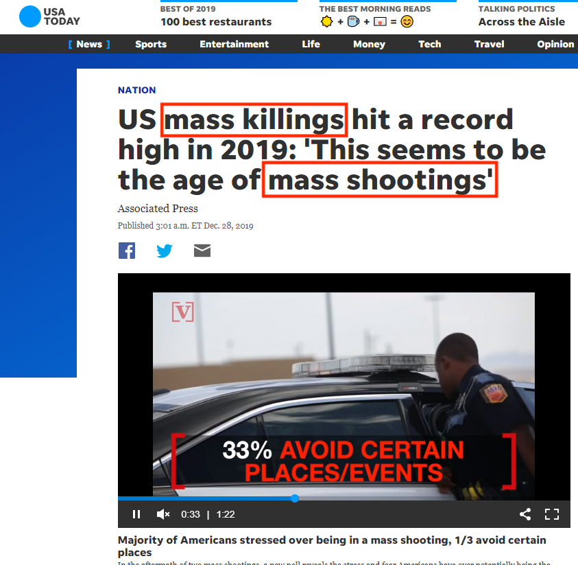 △美联社:2019年美国大规模杀戮事件达新高,其中大多数是枪击事件