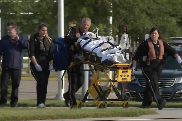 △一名受害者被带离弗吉尼亚枪击案现场 图片来源:英国《镜报》