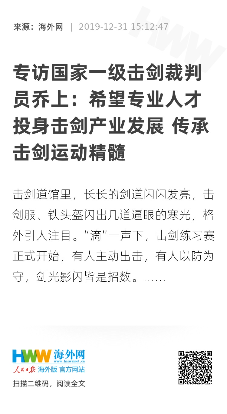 人民日报海外网:是什么促使您考取国家级击剑裁判的?