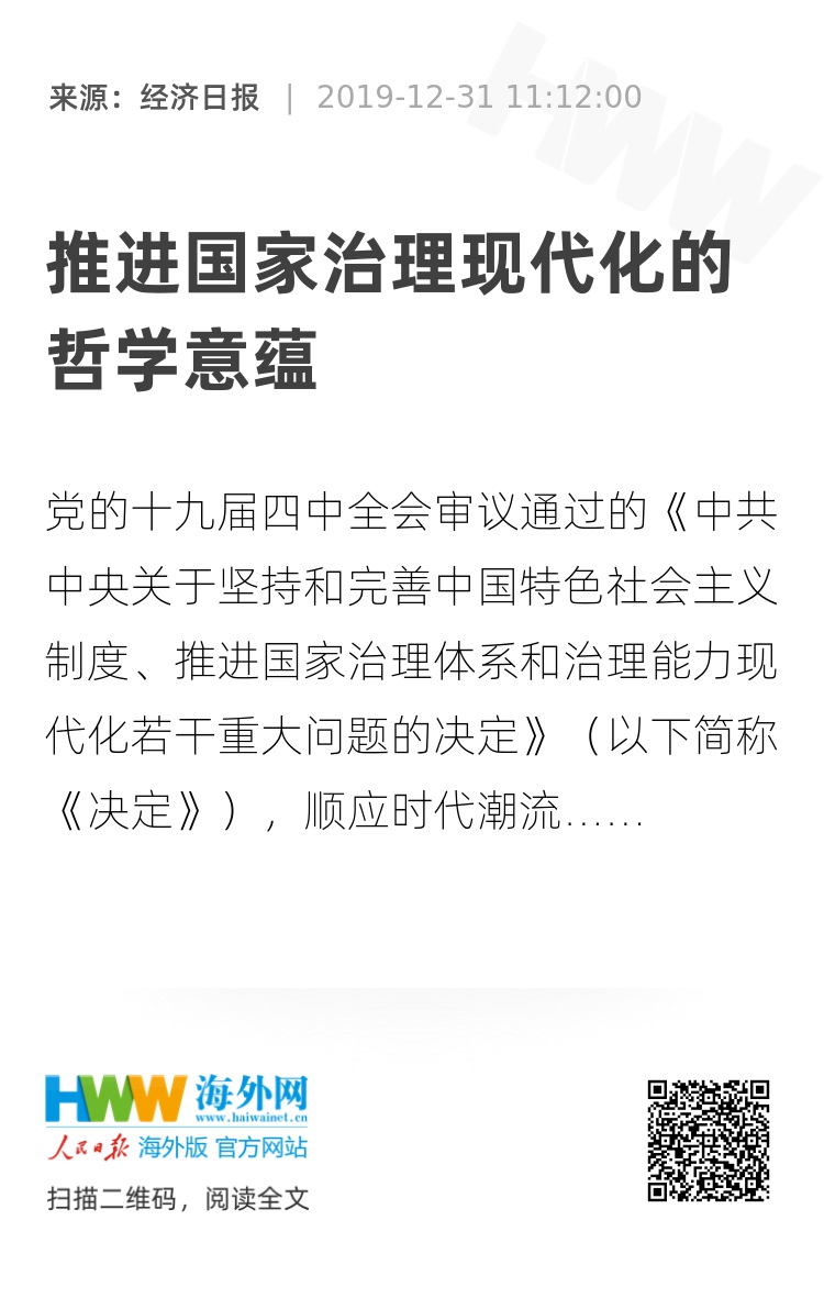 党的十九届四中全会审议通过的《中共中央关于坚持和完善中国特色社会主义制度、推进国家治理体系和治理能力现代化若干重大问题的决定》(以下简称《决定》),顺应时代潮流,适应我国社会主要矛盾变化,积极应对国内外风险挑战明显增多的复杂局面,蕴含着辩证唯物主义和历史唯物主义的科学世界观和方法论,闪耀着马克思主义哲学的光辉。