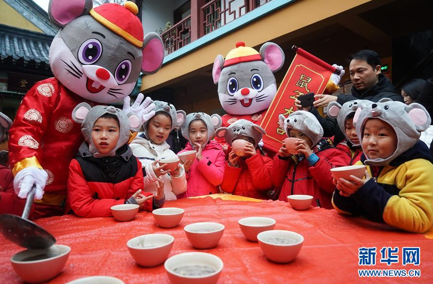 1月2日,小朋友在南京玄奘寺的赠粥送祝福活动现场喝腊八粥。 当日是农历腊月初八,中国传统腊八节。 新华社记者 季春鹏 摄