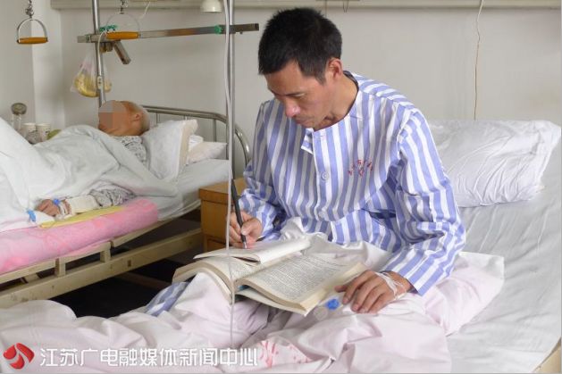 △2010年2月,吴敏秋在上海住院期间照片。他一边等待手术,一边整理书稿、校对。