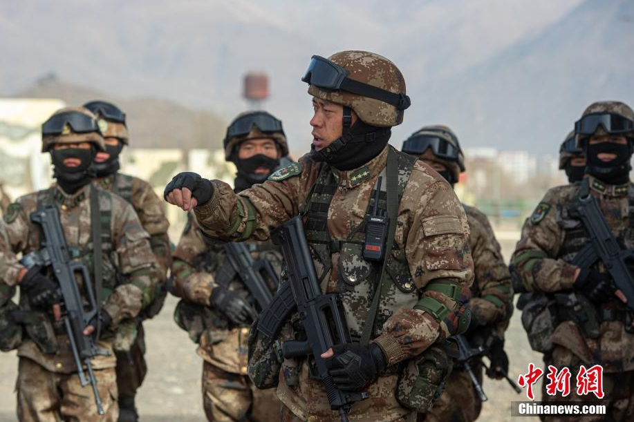 1月2日,西藏军区某特战旅迎来年度首个训练日。高原冬日虽是阳光明媚,却处处透着彻骨寒冷,在这天然的练兵场上,特战队员们开始了崭新一年的训练。图为特战连长现场明确任务。图/王述东 文/何蓬磊 马晓明 刘冲