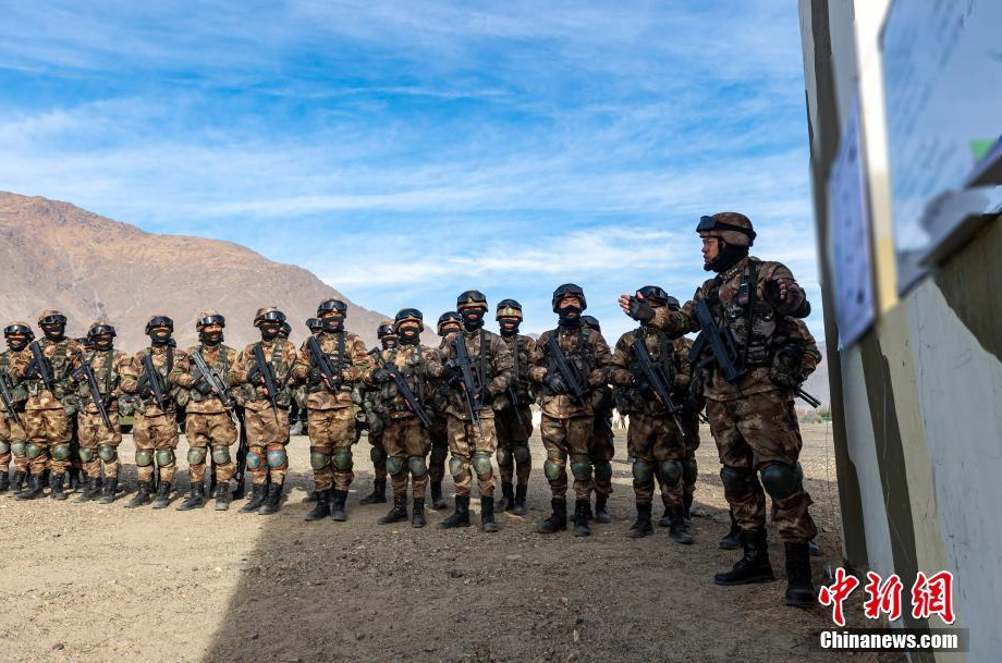 1月2日,西藏军区某特战旅迎来年度首个训练日。高原冬日虽是阳光明媚,却处处透着彻骨寒冷,在这天然的练兵场上,特战队员们开始了崭新一年的训练。图为演训结束,连长带领队员进行复盘。图/王述东 文/何蓬磊 马晓明 刘冲