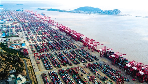 无人机拍摄的上海自贸区洋山深水港。新华社记者 丁汀 摄
