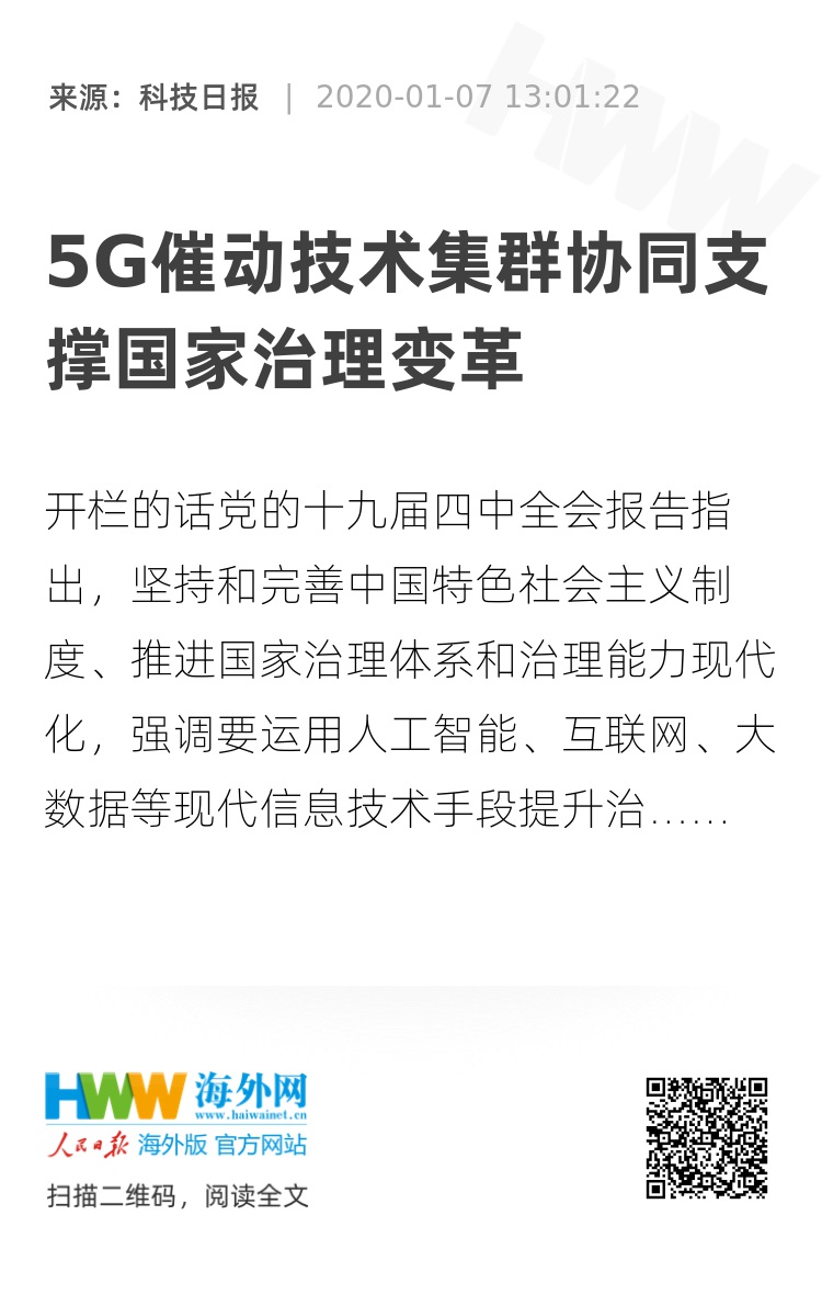 5G把整个社会重塑为一个复杂的生态巨系统,国家治理能力首先被赋能,社会治理过程、治理手段、治理评估等都将实现智能化、数字化,传统的由经验驱动的决策方式因转为数据驱动而变得更为科学、高效。