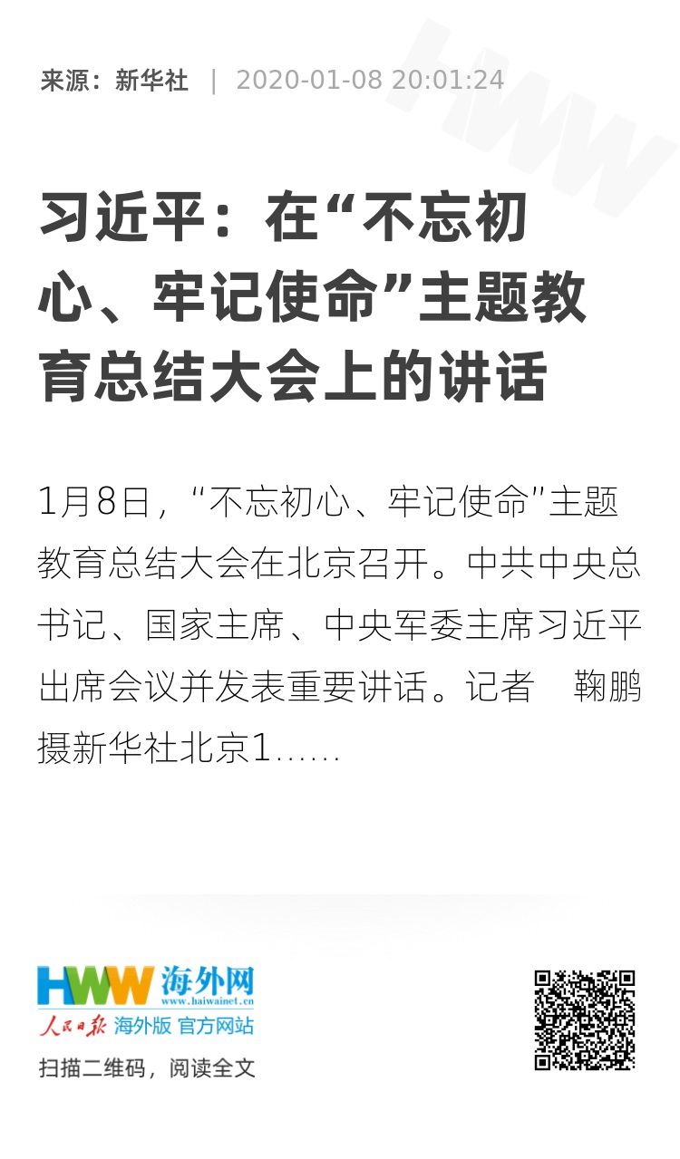 在全党开展“不忘初心、牢记使命”主题教育,是党的十九大作出的重大决策。党中央对此高度重视,做了精心准备、周密组织。从去年5月底开始,主题教育自上而下分两批进行,目前已基本结束。各级党组织有力推动,广大党员、干部积极投入,人民群众热情支持,整个主题教育特点鲜明、扎实紧凑,达到了预期目的,取得了重大成果。