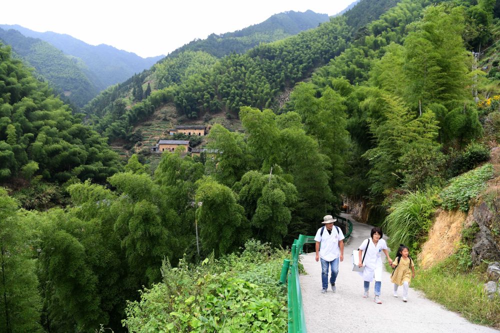 8月31日,刘军喜在安徽省休宁县璜尖乡清溪村拍摄7岁女孩张清语和父母的驻村故事。(新华社记者刘军喜)