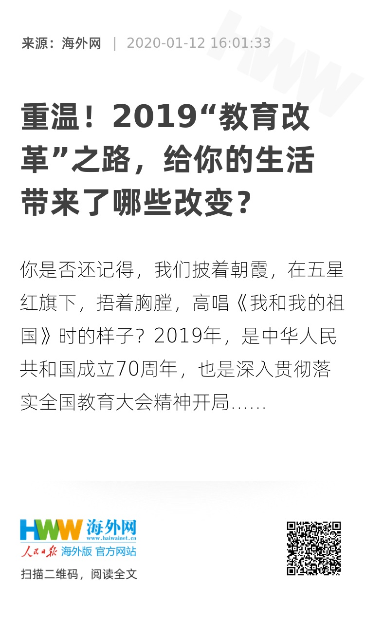 今天,我们再次回顾2019年色彩斑斓的教育改革,一起看教育奋进之歌给我们的生活带来哪些欣喜的变化。
