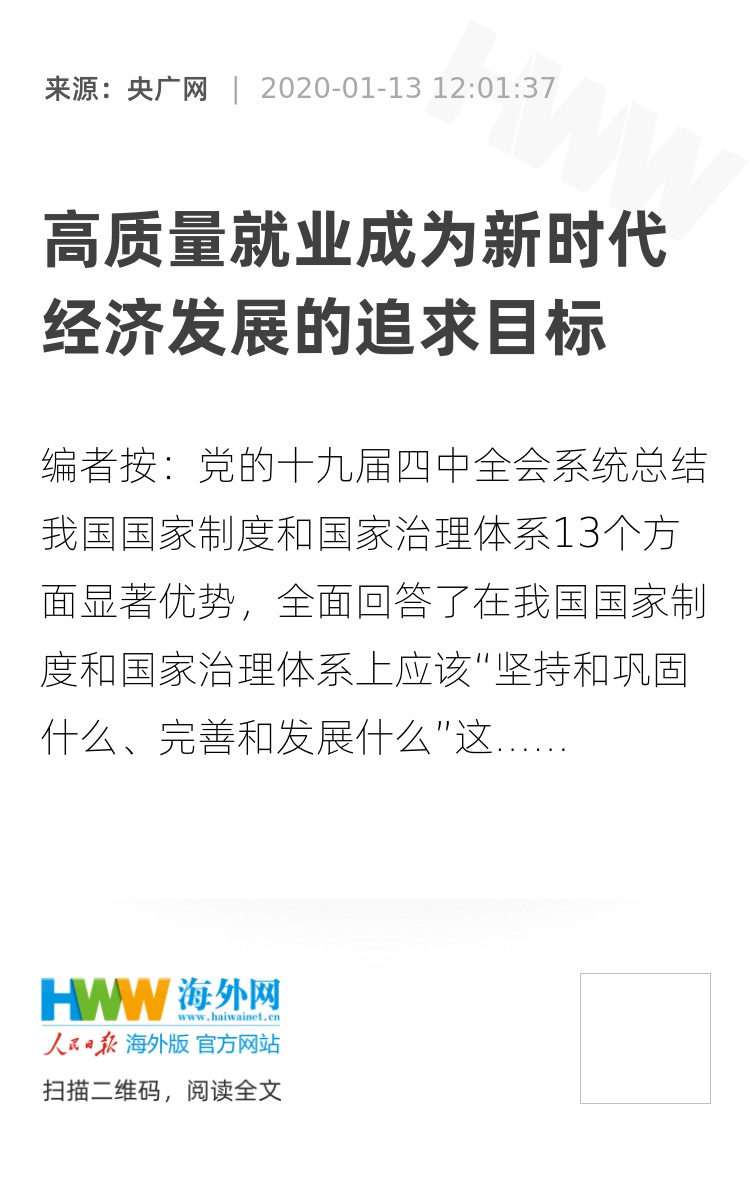 党的十九届四中全会提出,“坚持和完善统筹城乡的民生保障制度,满足人民日益增长的美好生活需要。”其中特别指出,“要健全有利于更充分更高质量就业的促进机制”。这句话该如何理解?“更充分更高质量”又如何实现呢?