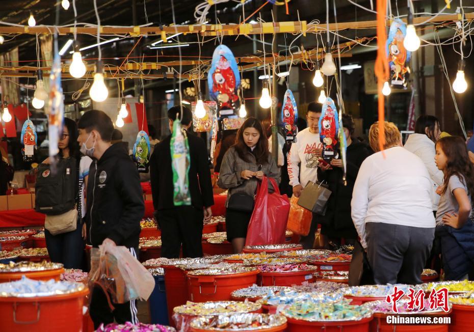 春节临近,一年一度的台北迪化商圈年货大街吸引了众多市民前往游赏、采购,彩灯彩旗从街头挂到街尾,年味十足。 中新社记者 史元丰 摄