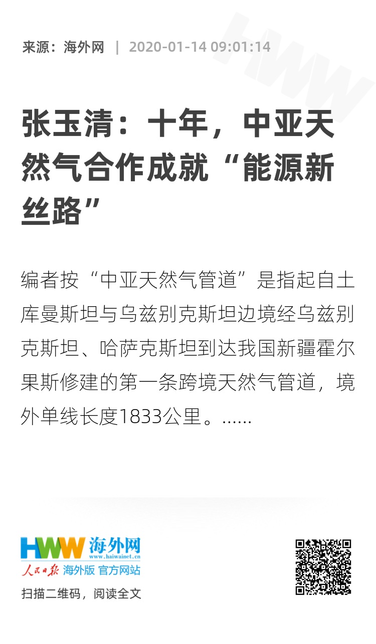 可以自豪的说,中亚天然气管道凝结着中国与中亚人民珍贵友谊,是习近平主席提出“人类命运共同体”的生动诠释,也是“一带一路”倡议的探索与实践!相信在相关国家和各方面共同努力下,未来这条管道将继续发挥能源运输的重大作用,继续造福于沿线各国人民。(文丨国家能源局原副局长 张玉清)