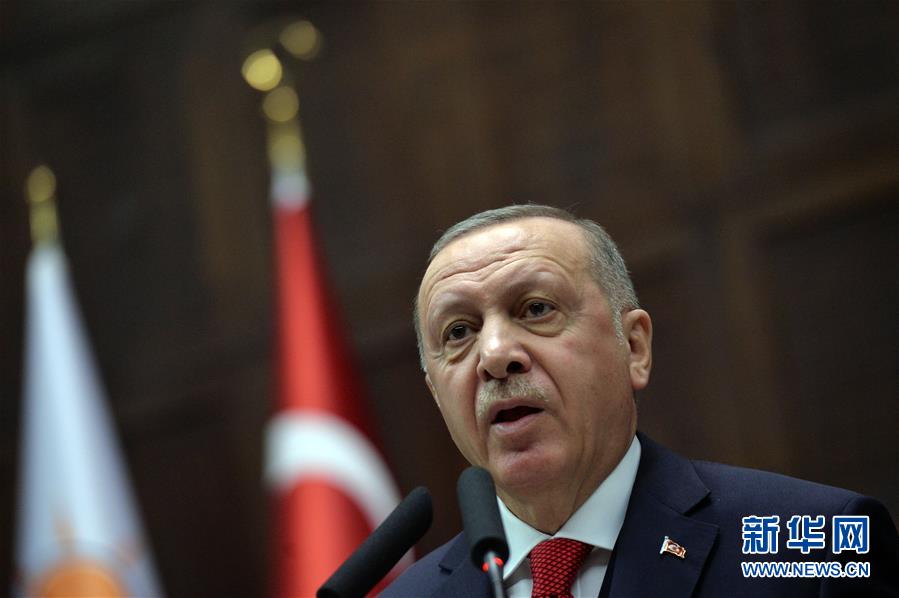 1月14日,在土耳其首都安卡拉,土耳其总统埃尔多安在议会会议上发表讲话。新华社发(穆斯塔法·卡亚摄)