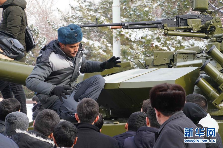 1月14日,在乌兹别克斯坦首都塔什干,当地民众在广场参观武器展。 新华社发(扎法尔摄)