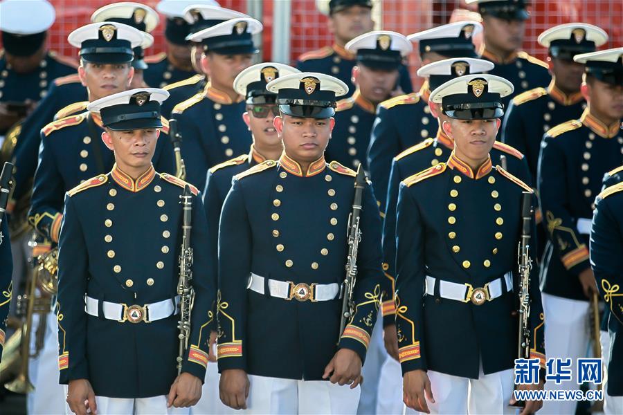 这是1月14日在菲律宾马尼拉港15号码头拍摄的参与舰艇欢迎仪式的菲律宾海警。参加中菲海警海上合作联合委员会第三次会议暨第二次高层会晤系列友好交流活动的中国海警5204舰,14日上午靠泊在菲律宾马尼拉港15号码头。这是中国海警舰艇首次访问菲律宾。 新华社发(乌马利摄)