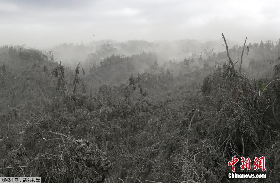 据报道,菲律宾火山与地震研究所(Phivolcs)表示,塔阿尔火山12日喷发后持续濒临爆发状态,这代表岩浆仍可能涌到火山口。图为菲律宾南部八打雁省火山灰覆盖的丛林。