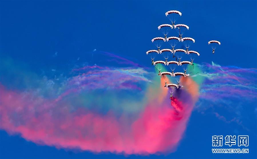 1月15日,在科威特费尔瓦尼耶省举行的第二届科威特航空展上,表演者进行编队跳伞表演。第二届科威特航空展15日在费尔瓦尼耶省拉开帷幕,共有来自30多个国家的约200家航空公司及相关企业参展,将展出70多架先进飞机。 新华社发