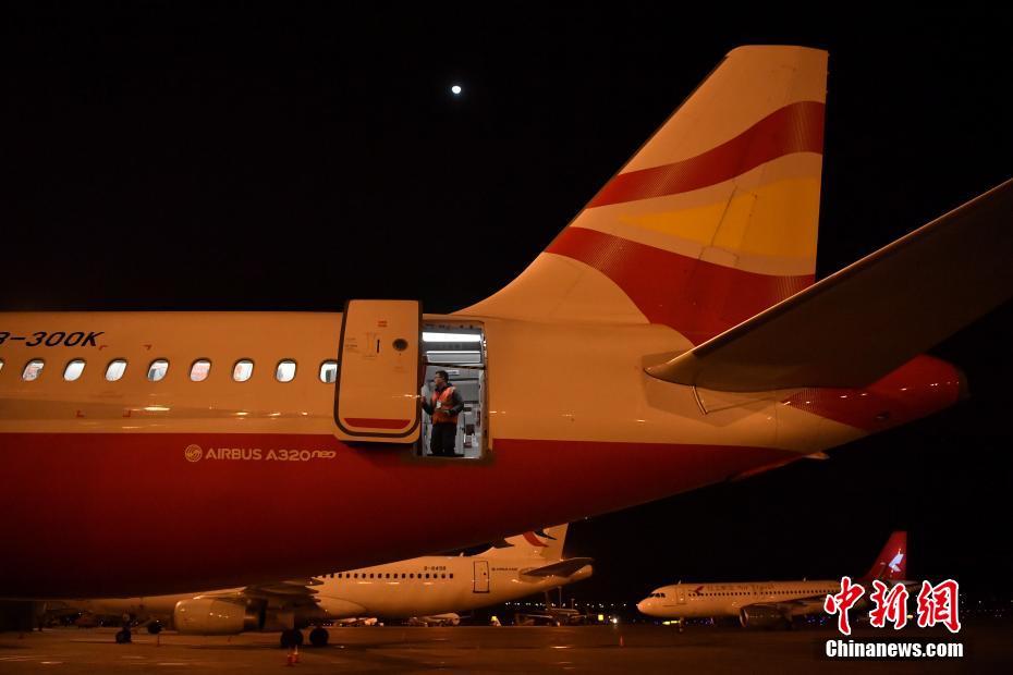 1月15日凌晨,工程师进行飞机舱门及应急滑梯检查。中新社记者 刘冉阳 摄