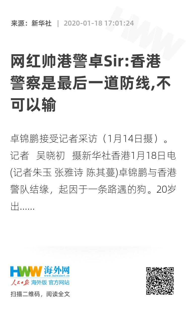 网上扑面而来的热情几乎把他淹没了。网友把他的名字改成“卓有为”,粉丝们几乎人人都会学他那段“你年轻有为啊”。网友们喜欢这位香港警察的帅气,也欣赏他不仅五官正,三观也正。