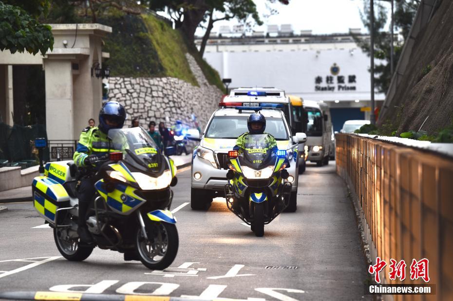 1月18日上午,因无牌管有枪械弹药、管有爆炸品及拒捕等罪罪成被判囚24年的重犯季炳雄,扣减刑期后服刑17年,当日刑满出狱,将被递解出境遣送美国。图为押送季炳雄的车队离开赤柱监狱。中新社记者 麦尚旻 摄