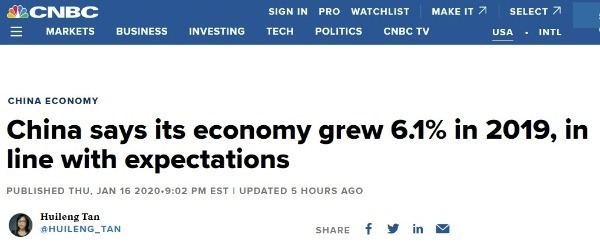 路透社报道称,数据显示中国经济在去年末已开始企稳,考虑到面临的国外复杂环境,6.1%的经济增长含金量较高,分析人士多认为2020年经济具备企稳改善潜力。