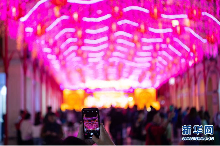 1月18日在澳门议事亭前地拍摄的春节灯饰。 为迎接新春佳节,澳门市政署以“金鼠迎春贺新禧”为主题,在各街区78个地点布置传统花灯和特色金鼠造型灯饰,让市民和游客感受喜庆祥和的年味,开启新年新气象。 新华社记者 张金加 摄
