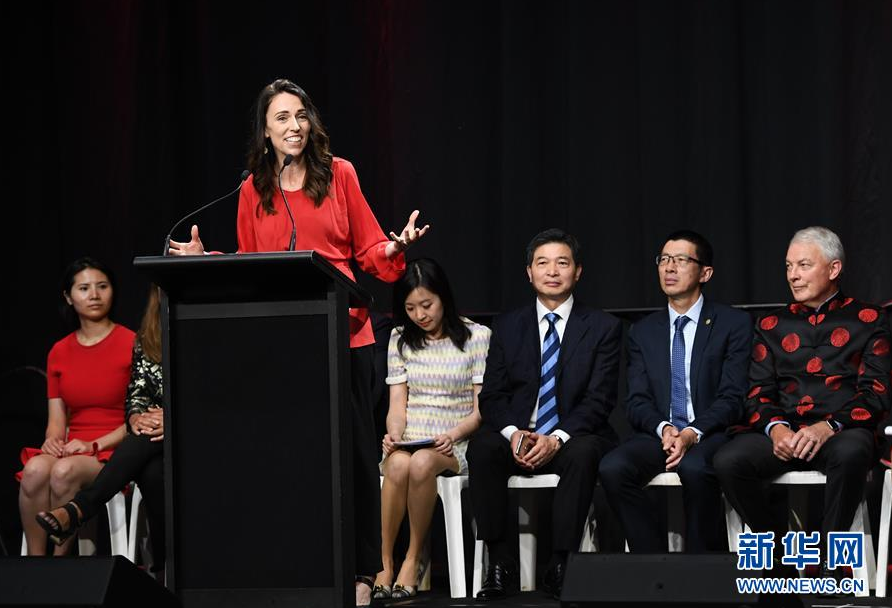 1月18日,在新西兰最大城市奥克兰,新总理杰辛达·阿德恩(左二)出席“新春花市同乐日”活动并讲话。 新西兰一年一度的华人社团迎接农历新春活动“新春花市同乐日”18日在新西兰最大城市奥克兰举行。新西兰总理杰辛达·阿德恩一袭红装出席活动,她称赞华人所作贡献,并称新中关系成熟稳健,立足长远。 新华社记者 郭磊 摄