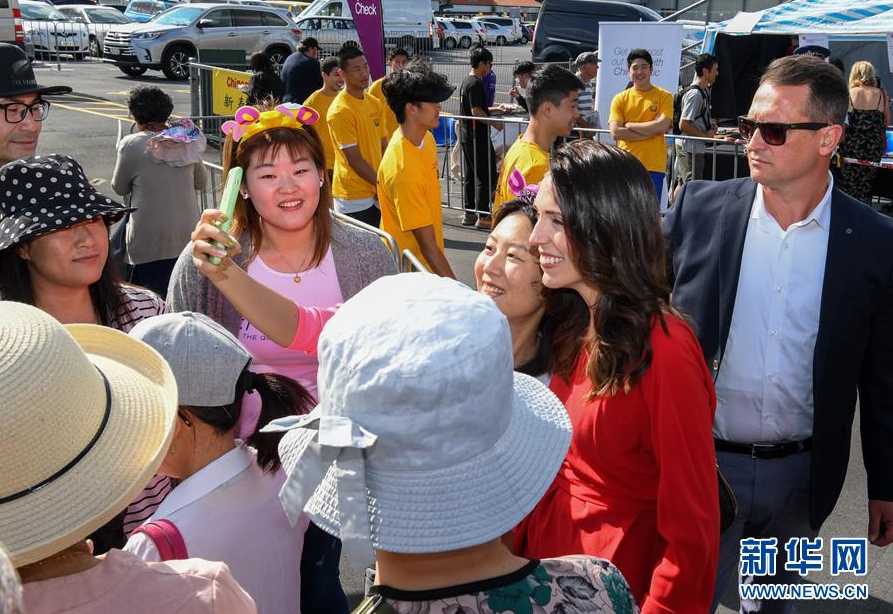 1月18日,在新西兰最大城市奥克兰,新总理杰辛达·阿德恩(前右二)出席“新春花市同乐日”活动。 新西兰一年一度的华人社团迎接农历新春活动“新春花市同乐日”18日在新西兰最大城市奥克兰举行。新西兰总理杰辛达·阿德恩一袭红装出席活动,她称赞华人所作贡献,并称新中关系成熟稳健,立足长远。 新华社记者 郭磊 摄