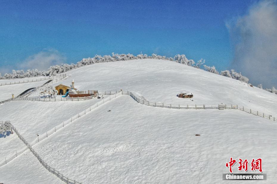 1月19日,航拍雪后的浙江安吉云上草原,白雪皑皑,呈现美丽的“北国风光”。这里海拔1168米,每年的冬天都会迎来美丽的雪景和雾凇,吸引了大批民众前来欣赏南方的“雪乡”。韩丹 摄