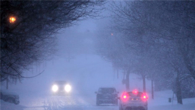 当地时间1月18日,受暴风雪天气影响,加拿大多伦多市道路能见度降低,车辆缓行。中新社记者 余瑞冬 摄