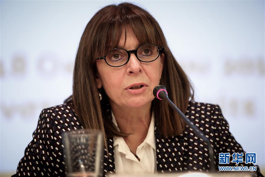 希腊议会22日以高票通过新总统提名,卡特里娜·萨克拉罗普卢成为希腊历史上首位女总统。 新华社发(马里奥斯·罗洛斯 摄)